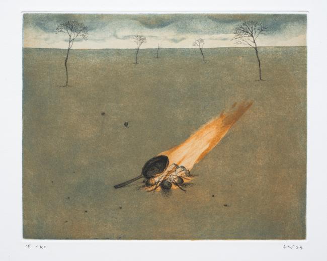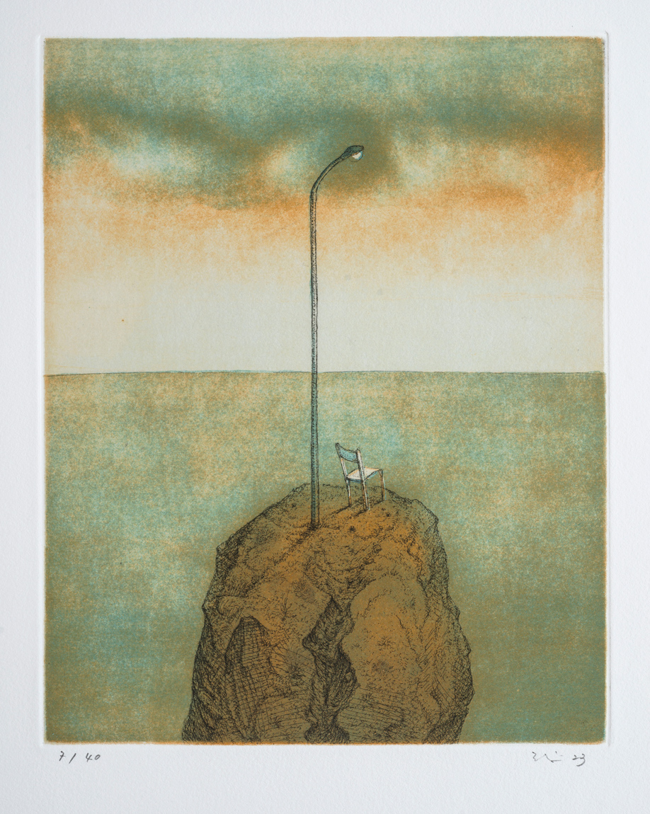 The artist makes paintings and engravings of exquisite landscapes and of moving instants of mild poetry.