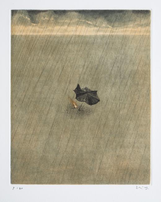 His work, which is primarily figurative, shifts beteween dream and reality. Thanks to its technical excellence and its rich imaginative power, it shows extraordinary balance.